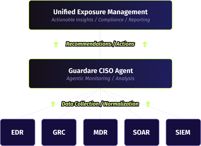 Rather than replace tools, Guardare learns from and connects them all, transforming fragmented data into AI-ready information with transparent risk scoring and a unified dashboard built for faster decision-making.